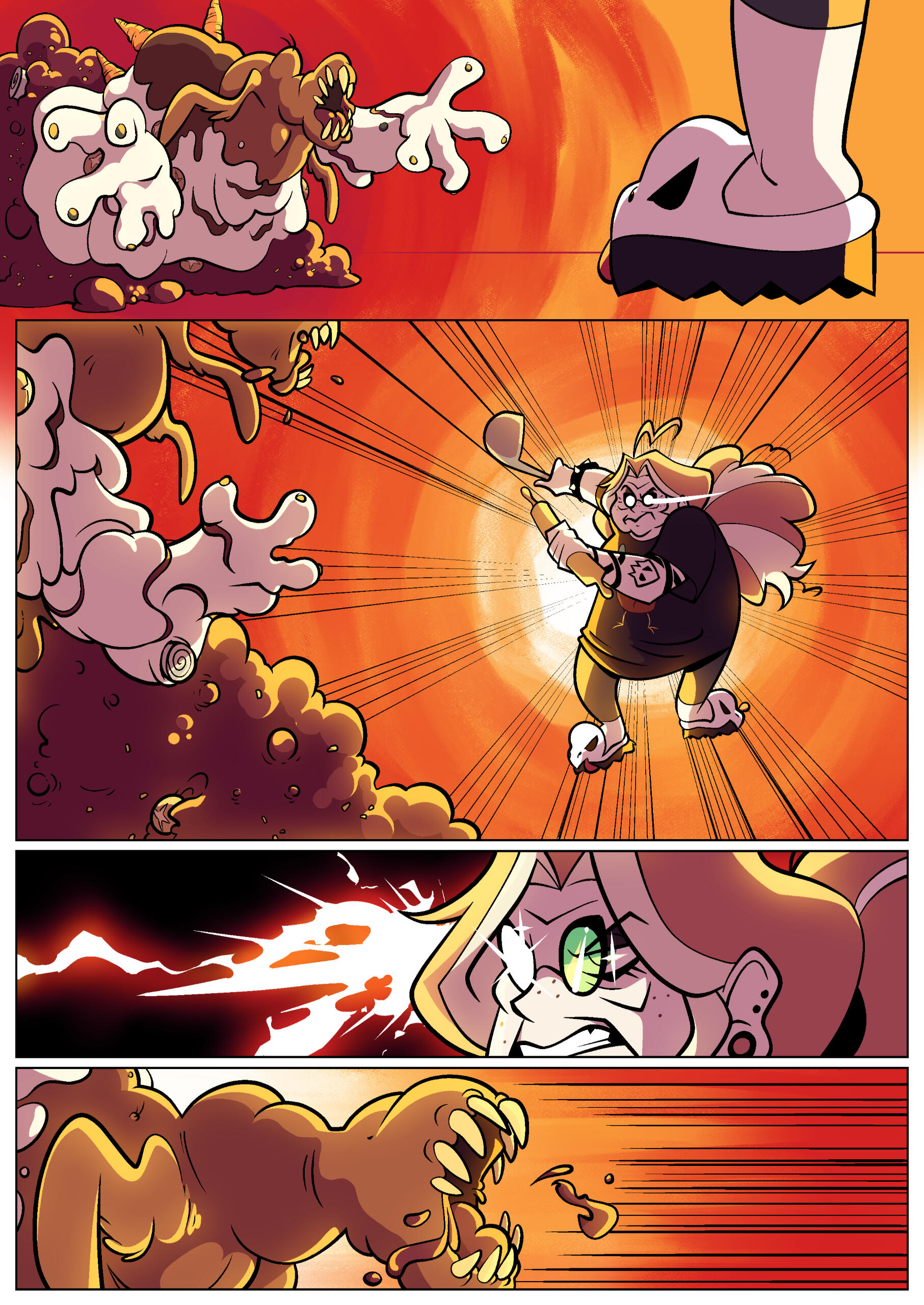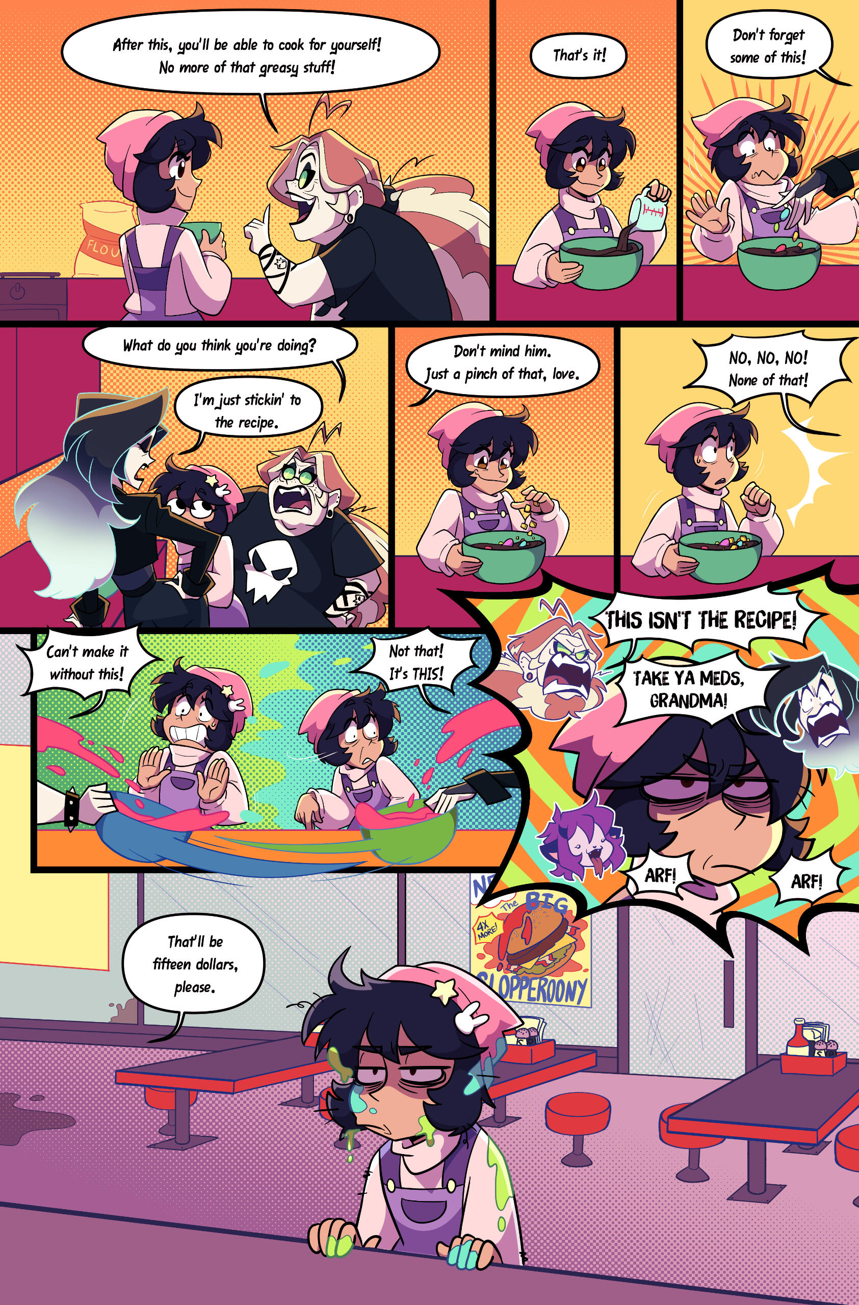She’s a dog. Just a normal dog. Don’t ask why she has hair… or is purple… Okay she’s anything but normal, but she’s Rue’s emotional support creature! She uses multiple mysterious powers & frightening forms to fight off both Sesamoid’s supernatural & Rue’s internal struggles.