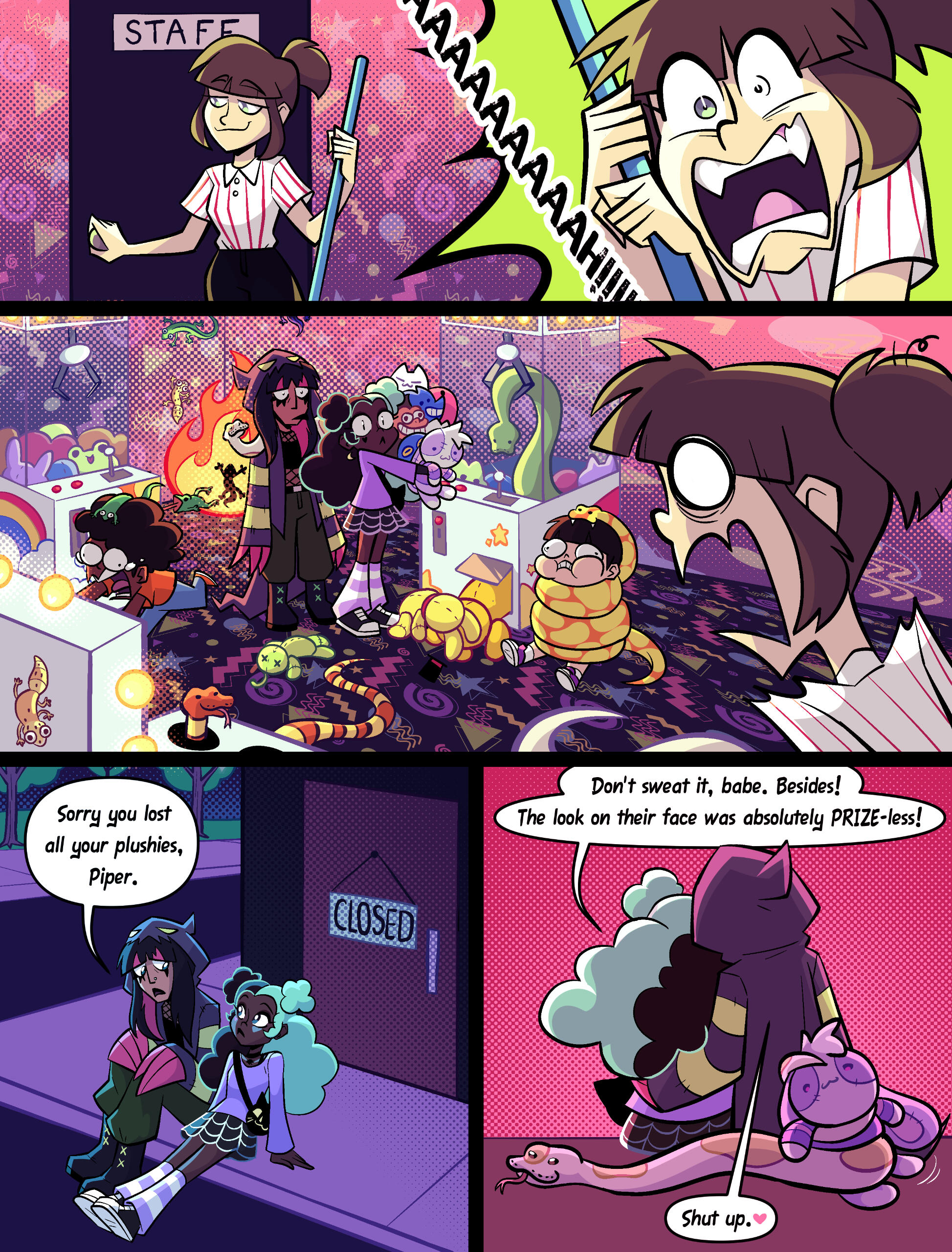 The son of a major record executive & complete shit-lord, Drain is an EDM musician & the self-proclaimed rival of Sesamoid. Dawning his trademark neon helmet, this shampire is the band's (and specifically Quinn's) biggest nuisance & constantly interferes with their adventures for his own selfish reasons. He loves to flaunt his vampirism for the fangirls & fame, but there are much less glamorous sides to being a vampire that he tries to ignore. Though he may be a nuisance in the eyes of the Sesamoid gang, deep down he's a bigger threat than anyone, including himself, would have guessed.